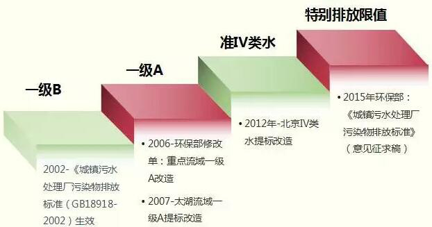 技術發展形成了水質標準的基本時代特征。標準的發展與技術進步有關。沒有足夠的技術,不知道水體有什么問題,能不能處理,能處理到什么程度,談何標準?推動技術進步是污水處理標準的方向,從最開始,城市只是考慮公共衛生問題,最早關注BOD,然后又增加COD、SS等污染物,再往后考慮氮磷環境問題,今后還會關注痕量污染物、新興污染物,進入可持續發展的時期,這是技術進步帶來的推動力。