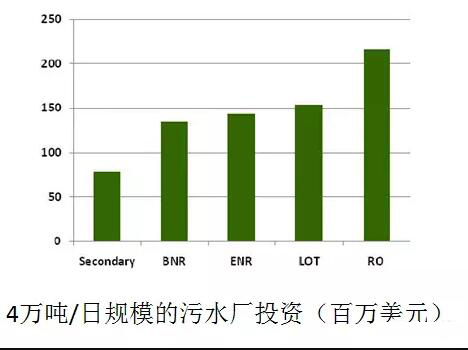 統計發現,極限氮磷處理在投資上比傳統脫氮投資費用的增加非常之小,幾乎可以忽略。