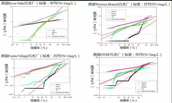 美國4座極限脫氮除磷污水廠出水氮指標的概率統計