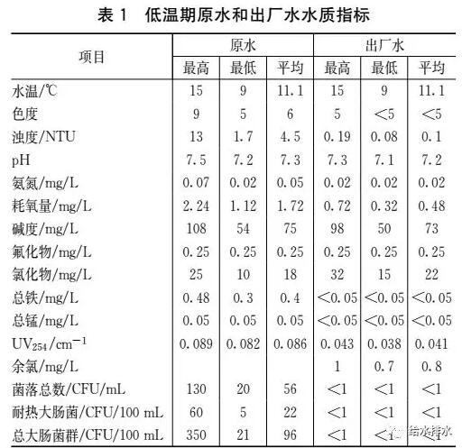 自2016年6月30日建成投產(chǎn),水廠運(yùn)行可靠,處理效果良好,出廠水水質(zhì)優(yōu)于國(guó)家標(biāo)準(zhǔn),在低溫低濁期,最高出廠水濁度穩(wěn)定低于0.19NTU、耗氧量小于0.72mg/L、色度不高于5,具體水質(zhì)如表1所示。